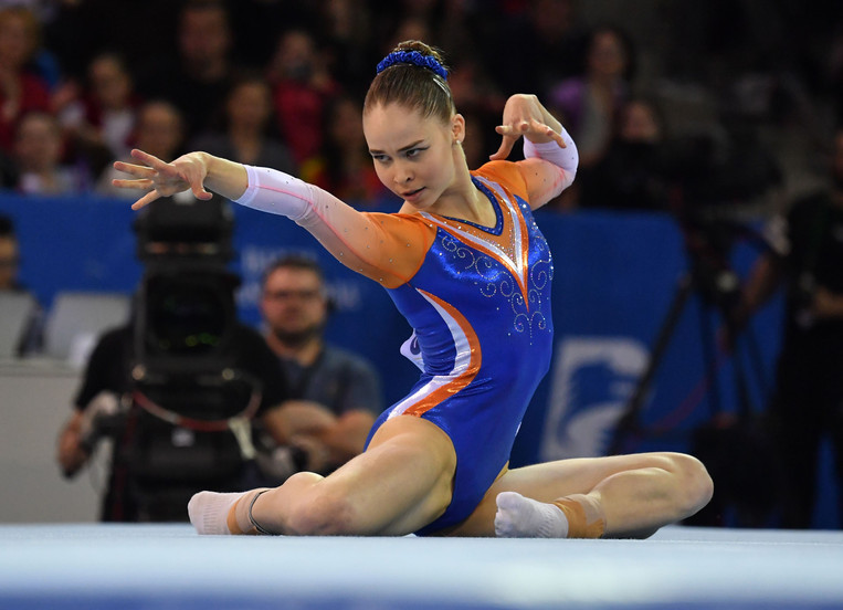 Vooral haar eerste serie, die uit een drievoudige schroef en salto voorwaarts bestond, was indrukwekkend, maar de uitvoering niet perfect. Een te diepe landing zorgde voor een pasje buiten de vloer. (Bron: NU sport)